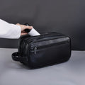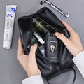 Mantén tus artículos de cuidado personal organizados y al alcance con esta elegante cosmetiquera negra. Perfecta para el hombre moderno y activo, es ideal para viajes, negocios y uso diario.